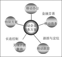 KTF不僅為普通消費(fèi)者提供了許多非常吸引人的應(yīng)用, 同時(shí)也為企業(yè)設(shè)計(jì)了相關(guān)方案。如:移動辦公是B2E市場中的重要應(yīng)用,是隨著無線技術(shù)的發(fā)展而興起的一種應(yīng)用,主要是針對公司或集團(tuán)用戶外出時(shí)仍然能通過運(yùn)營商的無線網(wǎng)絡(luò)接入公司內(nèi)部網(wǎng)絡(luò)進(jìn)行工作,而不受時(shí)間,地域的限制。運(yùn)營商可以針對集團(tuán)用戶采用特殊費(fèi)率或提供類似于集團(tuán)內(nèi)部的縮位撥號等功能。目前在CDMA網(wǎng)上可用VPN,將來配合CDMA