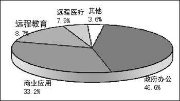 我國的遠(yuǎn)程教育和遠(yuǎn)程醫(yī)療尚處于發(fā)展初期,所占份額分別是8.7%和7.9%。這反映視頻會(huì)議系統(tǒng)在遠(yuǎn)程教育、遠(yuǎn)程醫(yī)療等方面建設(shè)力度還不夠大。不過,據(jù)研究表明,這兩個(gè)領(lǐng)域的應(yīng)用近年來呈現(xiàn)出蓬勃發(fā)展的勢(shì)頭。