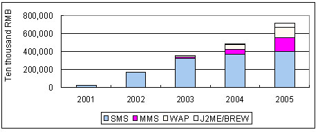 由于SMS、MMS、J2ME/BREW能帶來的收入較為可觀,目前整個(gè)移動(dòng)增值服務(wù)價(jià)值鏈的資金主要流向該三類業(yè)務(wù)。在SMS領(lǐng)域,產(chǎn)業(yè)鏈合作活躍,SP對(duì)游戲、交友、鈴聲、圖片等業(yè)務(wù)的投入很大;MMS適合點(diǎn)對(duì)點(diǎn)應(yīng)用以及信息點(diǎn)播服務(wù),市場(chǎng)潛力也很大;J2ME/BREW則以開發(fā)交互式業(yè)務(wù)為主,同時(shí)因是未來發(fā)展方向,屬于戰(zhàn)略性產(chǎn)品,倍受產(chǎn)業(yè)鏈的重視;WAP產(chǎn)品在移動(dòng)增值服務(wù)市場(chǎng)上將長期存在,但占整個(gè)移動(dòng)增值服務(wù)市場(chǎng)的份額比較低。