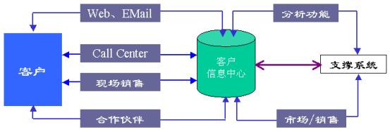 CRM系統(tǒng)的實(shí)施與企業(yè)的內(nèi)部和外部系統(tǒng)緊密相關(guān)。其涉及市場(chǎng)、營銷、銷售、實(shí)施、客戶服務(wù)與支持等一系列循環(huán)過程。一個(gè)完整的CRM系統(tǒng)不僅包含與客戶的多方位的多渠道接觸外,還包含市場(chǎng)的定位和分割,營銷策略的制定和客戶細(xì)分,銷售機(jī)會(huì)的把握,銷售的執(zhí)行(任務(wù)分派,任務(wù)的跟蹤),客戶的管理與分析,客戶的反饋與策略的評(píng)判等。從而再重新修正市場(chǎng)策略。這樣一個(gè)循環(huán)過程涉及管理、市場(chǎng)、客戶、產(chǎn)品、數(shù)據(jù)分析與處理等多學(xué)科的知識(shí)與技術(shù)。