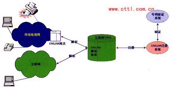 二、引入ENUM機制的網(wǎng)絡(luò)體系架構(gòu)