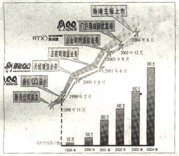 正是憑借著這些優(yōu)勢(shì),即時(shí)通信吸引聚集著一些忠誠(chéng)用戶,并開(kāi)始搭建網(wǎng)絡(luò)廣告、無(wú)線增值等一系列各種潛在的交易平臺(tái)?梢韵胂螅粋(gè)絕佳的聊天窗口同時(shí)也是一個(gè)方便的交易窗口和暢通的付費(fèi)入口,即時(shí)通信正在摸索一條前所未有的盈利模式。有專家指出,經(jīng)過(guò)近5年的曲折前行,即時(shí)通信的盈利模式將在2005年逐步明確。以騰訊QQ為例,我們來(lái)剖析一下即時(shí)通信的盈利模式是如何由模糊走向清晰的。從1999年2月QQ發(fā)布到2000年5月,QQ迅速聚攏了10萬(wàn)用戶。2000年8月,騰訊公司同廣東移動(dòng)合作,僅僅用了一年就扭虧為盈,實(shí)現(xiàn)了1000萬(wàn)人民幣的純利潤(rùn)。