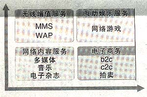 其中,互聯(lián)網(wǎng)及增值業(yè)務(wù)包括兩部分,核心業(yè)務(wù)主要是即時(shí)通信服務(wù),包括傳輸文本信息、圖像、視頻、音頻以及會(huì)員服務(wù)、號(hào)碼服務(wù)、電子郵件等;另外還有娛樂(lè)資訊門(mén)戶的建設(shè),包括向用戶提供新聞、體育、娛樂(lè)等多類資訊,還包括游戲中心、交友中心、校友錄、電子賀卡等多種娛樂(lè)服務(wù)。