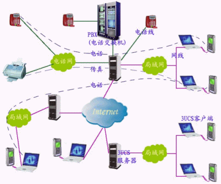 3UCS秉承便捷溝通、高效辦公之理念,將企業(yè)語音通訊、數(shù)字通訊整合在同一通訊線上,將電話交換機(jī)功能延伸至IP網(wǎng)絡(luò),電話與傳真線路共享,有效利用線路資源,無縫連接三個網(wǎng)絡(luò)(電話網(wǎng)、局域網(wǎng)、因特網(wǎng)),將電話交換機(jī)、傳真服務(wù)、消息等功能集于一身, 利用現(xiàn)有的局域網(wǎng)、因特網(wǎng)接打電話,收發(fā)傳真。