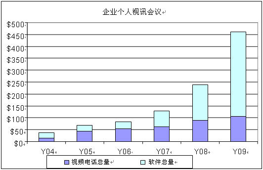 隨著網(wǎng)絡(luò)會議和實時通信成為桌面會議的首選之品以及在這些應(yīng)用中增加了視頻、網(wǎng)關(guān)服務(wù)器成為遠程ISDN系統(tǒng)的接入點,企業(yè)個人會議將迅速轉(zhuǎn)入到全IP、全軟件——編碼譯碼市場。同時我們還認(rèn)為:幾年后,網(wǎng)絡(luò)會議對市場的這種主要沖擊力將會淡出。