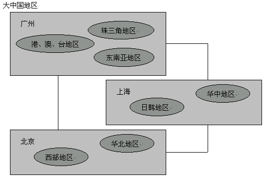 建設(shè)單點外包呼叫中心需要具備良好的地域服務(wù)功能,并應(yīng)該是政治、商業(yè)中心,有較強的服務(wù)需求,例如:長江三角洲的服務(wù)可選擇上海建設(shè)第一個基點中心,珠江三角洲可選擇廣州為第一基點中心,華北可選擇北京為第一基點中心。如下圖示意: