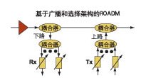 基于廣播和選擇結(jié)構(gòu)的ROADM包括簡單的兩端口耦合器和可調(diào)濾波器(見圖1)。這種設(shè)備允許所有節(jié)點看到所有業(yè)務(wù)流,因此業(yè)務(wù)流可以下路到任意或者所有節(jié)點,從而通過軟件可以立即進行重新配置。
