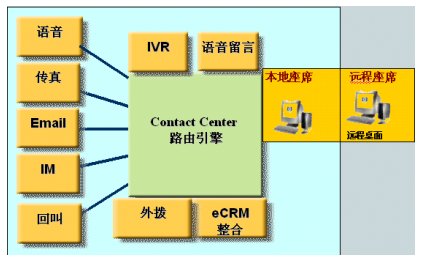 聯(lián)絡(luò)中心即Contact Center,它不同于傳統(tǒng)的客服中心,僅僅聯(lián)系客戶,而是傳統(tǒng)的Call Center 與CRM的有機(jī)結(jié)合。對(duì)于它來說,與客戶聯(lián)系的所有渠道,包括語音(例如電話、IVR、語速識(shí)別和聲音識(shí)別),網(wǎng)絡(luò)(例如E-mail),WEB,傳真和信函。這是一個(gè)輸入/輸出雙向的基于服務(wù)的環(huán)境,在這個(gè)環(huán)境中代理員處理所有有關(guān)銷售、客戶服務(wù)、營(yíng)銷、電話營(yíng)銷、搜集以及其他功能等方面的信息。聯(lián)絡(luò)中心從邏輯上是單體的,但從物理上是分散的。