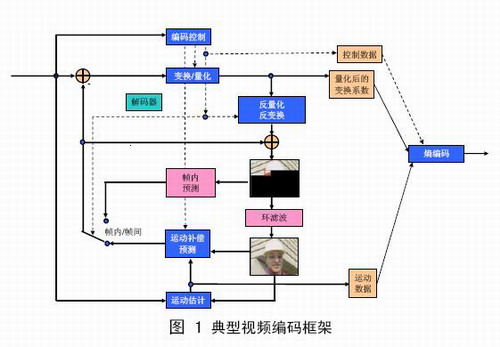 AVS視頻與MPEG標(biāo)準(zhǔn)都采用混合編碼框架(見圖1),包括變換、量化、熵編碼、幀內(nèi)預(yù)測、幀間預(yù)測、環(huán)路濾波等技術(shù)模塊,這是當(dāng)前主流的技術(shù)路線。AVS的主要創(chuàng)新在于提出了一批具體的優(yōu)化技術(shù),在較低的復(fù)雜度下實現(xiàn)了與國際標(biāo)準(zhǔn)相當(dāng)?shù)募夹g(shù)性能,但并未使用國際標(biāo)準(zhǔn)背后的大量復(fù)雜的專利。AVS-視頻當(dāng)中具有特征性的核心技術(shù)包括:8x8整數(shù)變換、量化、幀內(nèi)預(yù)測、1/4精度像素插值、特殊的幀間預(yù)測運動補(bǔ)償、二維熵編碼、去塊效應(yīng)環(huán)內(nèi)濾波等。