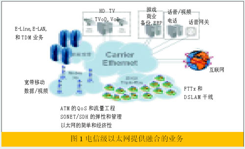 城域網(wǎng)是網(wǎng)絡(luò)技術(shù)轉(zhuǎn)型的重要環(huán)節(jié)。近年來城域以太網(wǎng)技術(shù)在各大電信運營商中得到了前所未有的肯定。在中國電信和中國網(wǎng)通的各省城域網(wǎng)改造項目中,以太網(wǎng)技術(shù)以不同形式被納入,從發(fā)展看城域以太網(wǎng)將成為未來城域網(wǎng)的主流。城域以太網(wǎng)有兩重含意,一是指城域以太網(wǎng)業(yè)務(wù),二是城域以太網(wǎng)基礎(chǔ)設(shè)施。