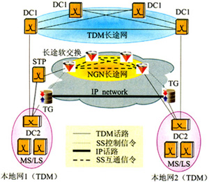 圖2 NGN長途網(wǎng)與TDM長途網(wǎng)結構