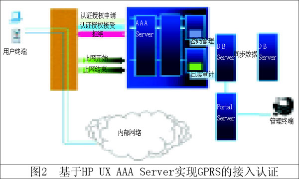 目前有很多Radius軟件可以實現(xiàn)這個功能。如: 基于HP UX AAA Server實現(xiàn)GPRS接入認證的邏輯結(jié)構(gòu)如圖2。