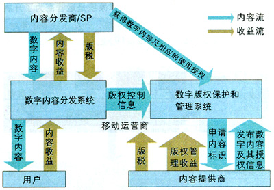 版權(quán)技術(shù)就是數(shù)字內(nèi)容版權(quán)管理(DRM)技術(shù),即給數(shù)字內(nèi)容一定的控制和標(biāo)識,避免其被非法使用、拷貝和盜版,為基于內(nèi)容的各種增值業(yè)務(wù)發(fā)展提供安全保證。目前,數(shù)字版權(quán)管理技術(shù)正由第一代向第二代發(fā)展。DRM1.0技術(shù)主要用于內(nèi)容的保護(hù),DRM2.0主要加強(qiáng)通信保護(hù)和密鑰保護(hù),這正是移動網(wǎng)需要的。