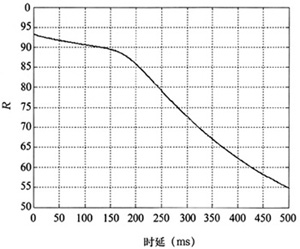對實時的語音和視頻業(yè)務(wù)來說,業(yè)務(wù)數(shù)據(jù)端到端的時延最為關(guān)鍵,從仿真結(jié)果圖6和圖7可以看出時延對R系數(shù)和MOS值的影響:隨著時延的增加,R系數(shù)和MOS值都降低,即語音質(zhì)量變差。當(dāng)時延大于150ms時,語音質(zhì)量下降的比較厲害。