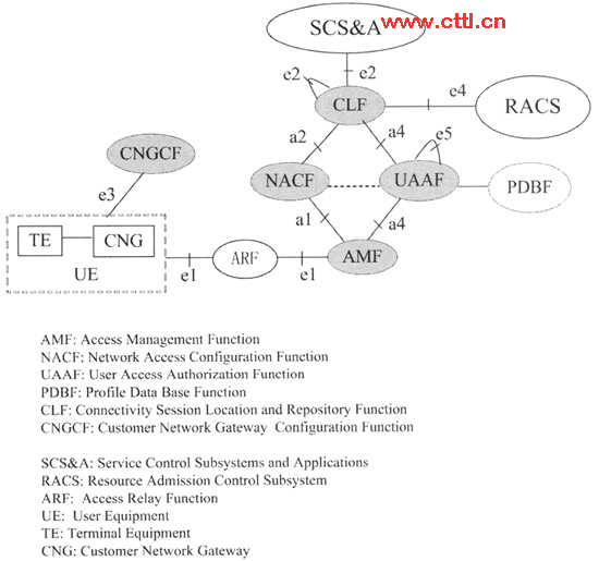 TISPAN有多個工作小組從事NASS的研究,分別研究NASS的內部架構和外部接口協(xié)議(如e1,e2,e4,e5),NGN Release