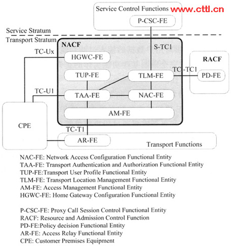 ITU-T沒有設立單獨的項目研究NACF,只在NGN的功能需求和架構建議草案中對NACF有所提及,所以對網絡附著子系統(tǒng)的研究相對滯后,研究內容主要包括:NACF的功能架構、該功能架構中包含的邏輯功能實體等。
