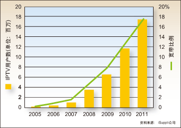但是如果市場研究報告所言非虛,那么看來這種情況正在迅速發(fā)生變化。例如,iSuppli公司認(rèn)為,到2011年,中國的IPTV用戶將超過1,700萬,雖然今天這個數(shù)字還不到100萬。如果想要實現(xiàn)上述目標(biāo),肯定還需要克服許多挑戰(zhàn),但是對芯片和系統(tǒng)制造商來說,這卻是一個為其量身打造的好機會。