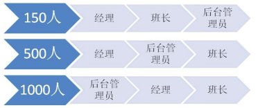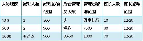 當員工人數(shù)在150人的時候,班長往往有10位左右。經(jīng)理能有足夠的精力來兼顧全局,甚至和大部分員工認識,親自制定關鍵流程和制度,參與每次的重要信息傳達。那么這個時候,經(jīng)理無疑是最為重要的管理者。班長是第二重要的,后臺管理員(質檢、維護、投訴處理、綜合行政等)就更多是個執(zhí)行角色。