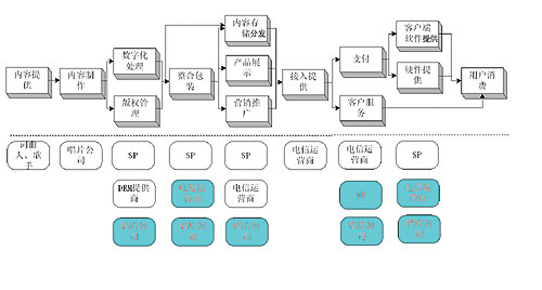 目前運(yùn)營商涉及的鏈條有寬帶接入提供、內(nèi)容存儲分發(fā)、產(chǎn)品展示、營銷推廣、支付、客戶服務(wù)等。