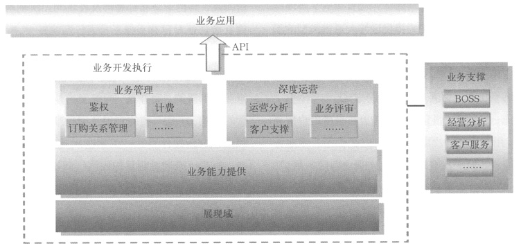 根據(jù)移動增值業(yè)務特征及業(yè)務部署、管理需求,目標網(wǎng)絡架構中將實現(xiàn)業(yè)務與控制的分離,劃分業(yè)務控制域和業(yè)務開發(fā)執(zhí)行域,并可開放公共接口實現(xiàn)各增值業(yè)務應用無差別的接入、管理及功能調(diào)用,以方便的實現(xiàn)業(yè)務的融合、業(yè)務功能的靈活組合,更利于高效、簡便的實現(xiàn)業(yè)務部署、開發(fā)及運營。