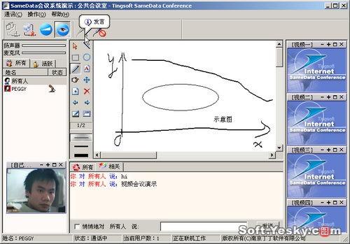 可以看到該系統(tǒng)提供了多路視頻展示與共享文檔顯示區(qū)、文本交流、文檔共享、語(yǔ)音交流等多種交互手段,各用戶可以在主席的協(xié)調(diào)下使用各項(xiàng)功能輕松地實(shí)現(xiàn)實(shí)時(shí)交流與網(wǎng)絡(luò)協(xié)作。