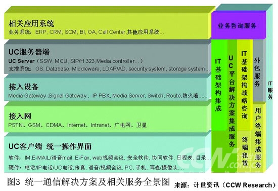 ”、“智能通信”和“統(tǒng)一溝通”等,盡管每個(gè)廠商所給出的定義均有些細(xì)微的差別,但總體來看,其核心內(nèi)容就是指將現(xiàn)在各種溝通方式進(jìn)行融合,目的是讓人們無論是在任何時(shí)間、任何地點(diǎn),都可以通過任何設(shè)備、任何網(wǎng)絡(luò)實(shí)現(xiàn)自由的溝通。目前常用的溝通方式有電話、傳真、短信、email、Web會(huì)議、視頻會(huì)議、語音信箱、IM軟件、協(xié)同工作平臺等等,這些溝通方式覆蓋了電信、IT和互聯(lián)網(wǎng)三大領(lǐng)域,因此統(tǒng)一通信是這三大領(lǐng)域逐步發(fā)展、自然融合的結(jié)果。