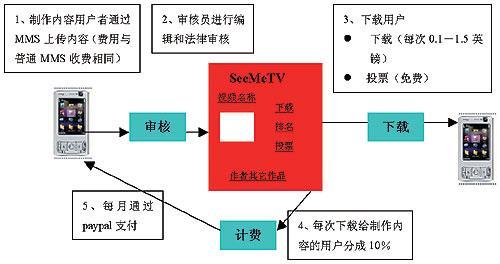 M1新加坡移動(dòng)運(yùn)營(yíng)商M1推出了用戶制作及共享視頻業(yè)務(wù)——MeTV,用戶可以通過MMS上傳視頻內(nèi)容,其它用戶可以瀏覽并下載。這項(xiàng)業(yè)務(wù)為用戶提供了一個(gè)展示自己和了解他人的平臺(tái)。這個(gè)業(yè)務(wù)也建立了與用戶分成的模式,用戶可以從自己上傳的內(nèi)容中獲得利潤(rùn)。用戶上傳的視頻內(nèi)容,被他人下載一次,用戶就可以獲得0.05新元。自從2007年3月該業(yè)務(wù)推出以來,已經(jīng)有超過4萬(wàn)名用戶,收入最高的用戶已經(jīng)達(dá)到50~100新元。
