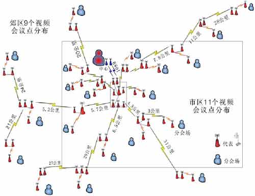 越來越多的企事業(yè)單位,已將無線寬帶視頻會議系統(tǒng)的建設(shè)提上了日程。以某單位無線寬帶視頻會議系統(tǒng)為例,其分支機(jī)構(gòu)遍布上海市郊區(qū)達(dá)20個(gè)行政區(qū)劃,其中市區(qū)11個(gè),郊區(qū)9個(gè),非常分散,各點(diǎn)之間距離遠(yuǎn)近不一。為提高辦事效率,實(shí)現(xiàn)各分支機(jī)構(gòu)、各部門之間的協(xié)同工作,該單位決定建設(shè)視頻會議系統(tǒng),由于對網(wǎng)絡(luò)傳輸系統(tǒng)提出了極高的要求,在充分比較了各種技術(shù)方案的可行性與利弊后,最終決定選用無線寬帶技術(shù)構(gòu)建視頻會議系統(tǒng)的傳輸網(wǎng)絡(luò)。