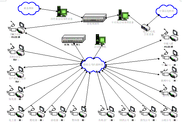 近年來,上海石化陸續(xù)建立了一些視頻會議室,例如,作為中石化集團(tuán)公司視頻會議系統(tǒng)的分會場之一,可以通過衛(wèi)星線路參與中石化總部召開的電視電話會議;位于上海華敏辦公樓的視頻會議室,可以通過電信專線實現(xiàn)與金山本部、北京總部的三地視頻會議;還有一些小型視頻會議室,可以實現(xiàn)與中石化兄弟單位的視頻連接。但這些系統(tǒng)不僅未能有機地整合起來,而且視頻會議室的范圍和規(guī)模無法滿足公司各部門的應(yīng)用需求。