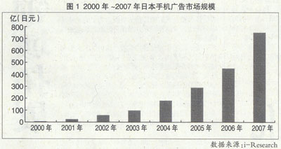 日本手機(jī)廣告市場從2004年開始呈現(xiàn)快速增長的勢頭,2007年市場規(guī)模達(dá)到750億日元(見圖1)。