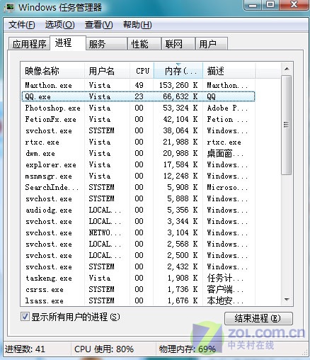 最后我們來看看大家都很關(guān)心的系統(tǒng)資源占用情況。沒有比較就沒有優(yōu)劣,大家從任務管理器的截圖就可以看出飛信、QQ、MSN這三款主流聊天軟件占用的系統(tǒng)資源多少了(如圖12)。