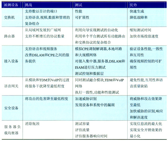 此外,思博倫還可以提供安全風(fēng)險管理解決方案。服務(wù)商和網(wǎng)絡(luò)設(shè)備制造商可以生成真實的流量,并將其引入網(wǎng)絡(luò)中,然后監(jiān)視各種“惡意代碼”對單個設(shè)備和總體網(wǎng)絡(luò)性能造成的影響,從而對網(wǎng)絡(luò)和設(shè)備中可能存在的漏洞進行周全的測試。表1為思博倫基礎(chǔ)設(shè)施測試的挑戰(zhàn)和優(yōu)勢。