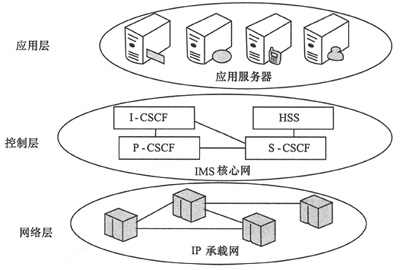 隨著通信技術(shù)不斷發(fā)展,通信網(wǎng)絡(luò)寬帶化成為一個(gè)明顯的發(fā)展趨勢(shì)。為了適應(yīng)這個(gè)發(fā)展趨勢(shì),向用戶提供更加豐富的移動(dòng)業(yè)務(wù)。3G移動(dòng)通信標(biāo)準(zhǔn)組織(3GPP)在R5版本中提出了IP多媒體子系統(tǒng)(IMS)的技術(shù)架構(gòu)[1],其核心思想是在3G網(wǎng)絡(luò)中引入支持IP多媒體業(yè)務(wù)的子系統(tǒng)。IMS的技術(shù)特點(diǎn)在協(xié)議層面上來說。就是控制和應(yīng)用分離,如圖1所示。控制層采用會(huì)話初始化協(xié)議(SIP),應(yīng)用層支持各類IP以上的應(yīng)用層協(xié)議,如RTP、FTP、SMTP等。在網(wǎng)絡(luò)層面上來說,IMS采用承載網(wǎng)和控制網(wǎng)分離的原則。由于上述技術(shù)特點(diǎn),在IMS網(wǎng)絡(luò)上推出多媒體業(yè)務(wù)比3G