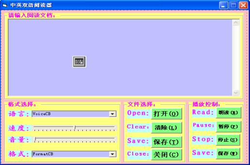 如前所述,Microsoft Speech SDK5.1不能真正地進(jìn)行中英文混合文本的朗讀。我設(shè)計的中英文混讀程序就要實現(xiàn)真正地進(jìn)行中英文混合文本的朗讀。該程序利用Microsoft