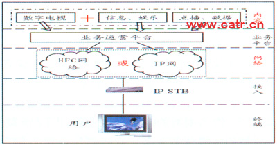 這種模式的合作點主要在接入層面,以提供雙模機頂盒為主要方法。固網(wǎng)公司和廣電發(fā)揮各自資源優(yōu)勢進行合作。廣電節(jié)目傳送由廣電負責(zé),同網(wǎng)提供寬帶增值服務(wù),兩者分業(yè)經(jīng)營,地位平等。