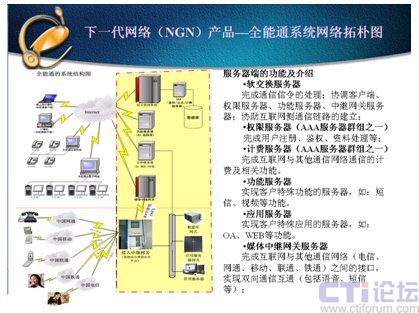 到了2007年下半年,以前勸我的朋友紛紛找我要全能通。而且他們現(xiàn)在還基于這種架構(gòu),進行更深一步的開發(fā)。2008年推出的統(tǒng)一通信,在某些方面還不如全能通。全能通即有目前統(tǒng)一通信的功能,還甚至包括無線的WAP、短信等功能。(詳細(xì)的功能與結(jié)構(gòu),請看‘全能通--下一代網(wǎng)絡(luò)(NGN)的應(yīng)用’—是我?guī)秃蛣?chuàng)世紀(jì)寫的文章)