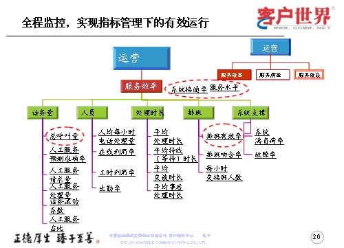 第一,是依據(jù)平衡計(jì)分卡原理,建立了客服中心運(yùn)營(yíng)指標(biāo)監(jiān)控體系,以實(shí)現(xiàn)呼叫中心的規(guī)模化經(jīng)濟(jì)運(yùn)營(yíng)。