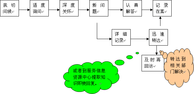 c、 客戶關(guān)系中心的客戶服務(wù)信息資源中心需要及時整理、收集、豐富客戶服務(wù)信息資源,為話務(wù)人員的咨詢解答和回訪慰問提供支持。