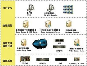 信息交換指將采集到的信息使用標準協(xié)議進行封裝,通過IP網(wǎng)絡將封裝的信息交換到目標主機,目標主機對信息進行處理,以便提供各類信息服務功能,如集中存儲(NVR)、信息檢索、VOD