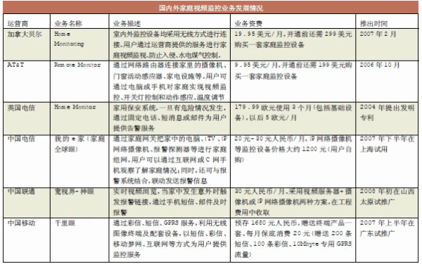 例如,在中國臺灣地區(qū),移動運營商已經(jīng)推出了基于3G移動網(wǎng)絡的無線視頻監(jiān)控業(yè)務,用戶可通過3G手機對家庭情況進行監(jiān)控。同時,3G家庭終端(前端監(jiān)控設備)具備專業(yè)的無線遠程監(jiān)控功能,當出現(xiàn)盜賊入侵、意外失火或是煤氣泄漏等狀況,它會把報警信息發(fā)送到主人手機上,讓主人及時獲悉并做出處理。3G家庭終端還可以根據(jù)指令拍攝下家中的實時視頻畫面,并發(fā)到主人手機中供以后取證,這對于中高端家庭來說,具有相當?shù)恼T惑力。