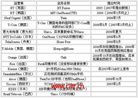2008年,基于融合性終端的FMC業(yè)務(wù)備受矚目,BT、法國電信、德國電信、NTT DoCoMo等運營商利用UMA技術(shù),提供基于WiFi/GSM或者WiFi/WCDMA雙模終端的FMC業(yè)務(wù),市場反映良好,被運營商作為未來重點發(fā)展的業(yè)務(wù),預(yù)計2010年全球FMC用戶將達(dá)到3