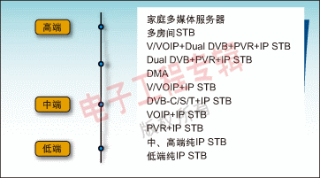 標(biāo)清(SD)對于大眾市場來說是一個合乎邏輯的選擇。ODM廠商不管選用哪種操作系統(tǒng)(Windows CE或Linux)都能與NXP公司的IP-STB平臺相結(jié)合,為本地市場生產(chǎn)所期望的產(chǎn)品。