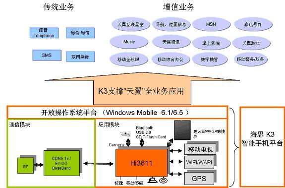 K3方案中集成了GPS、WAPI/WiFi、CMMB(帶CA)的等各種主流應用,手機廠商在選擇時可以快速的剪裁、組合,形成不同配置的天翼手機系列,來滿足不同消費群體的需求。