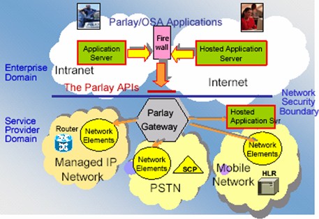 從圖中可以看到,OSA的基本思路是,把電信網(wǎng)絡(luò)的服務(wù)抽象成為一個(gè)特定的接口。這個(gè)接口的名稱現(xiàn)在被我們稱為Parlay。建立在OSA基礎(chǔ)之上的服務(wù)可以利用Parlay這個(gè)接口很容易的使用電信網(wǎng)絡(luò)中的服務(wù)而不用去關(guān)心這些接口是如何實(shí)現(xiàn)的。例如我們的一個(gè)多媒體服務(wù)希望給一個(gè)用戶發(fā)送一條短信以通知他某個(gè)事件的發(fā)生,那么這個(gè)服務(wù)需要做的是告訴Parlay這個(gè)接口需要給哪個(gè)用戶發(fā)送什么樣的內(nèi)容的信息,而不需要了解在移動網(wǎng)絡(luò)中原來是使用SMPP這樣的協(xié)議來實(shí)現(xiàn)短信的傳送的,又或者也不用去考慮在一個(gè)IP網(wǎng)絡(luò)中我們可以用SMTP這樣的協(xié)議來實(shí)現(xiàn)他。
