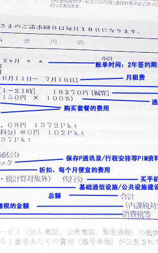 到底在購買各種套餐之后,用戶每個月使用多少錢呢?下面是一份普通的日本手機用戶每個月收到的賬單,通過這份賬單我們清晰看出3G資費的構成。在這里,我們清晰看到?jīng)]有漫游費,如果沒有折扣,該用戶至少需要付近3萬日元的費用,實際上,最后用戶需要繳納的費用是6064日元,其中還包含了購買新款手機3380日元的費用,實際上產(chǎn)生的話費是2660日元。