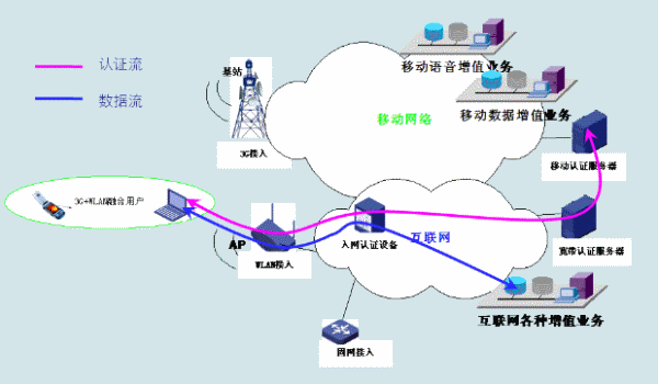 圖3 融合用戶WLAN接入,訪問移動(dòng)增值業(yè)務(wù)