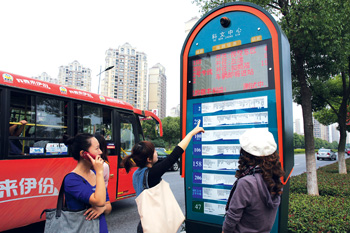 智能公交系統(tǒng)運(yùn)行以后,乘坐公交車的市民可以通過(guò)公交電子站牌、“96196”交通服務(wù)熱線電話、移動(dòng)掌上公交短信查詢、蘇州交通縱橫網(wǎng)站和蘇州移動(dòng)生活網(wǎng)等多種方式實(shí)時(shí)查詢車輛到站信息。