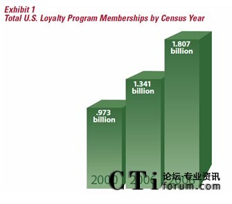 據(jù)權(quán)威的客戶忠誠(chéng)度研究機(jī)構(gòu)COLLOQUY在2009出版的一份報(bào)告,2008年底,全美客戶忠誠(chéng)度計(jì)劃的參與人次達(dá)到18.07億,平均每個(gè)美國(guó)家庭參與了14.1個(gè)忠誠(chéng)度計(jì)劃,相較2006年底的13.41億參與人次,共增了了24.73%(連續(xù)兩年環(huán)比增長(zhǎng)12%/年),而同期美國(guó)的GDP增長(zhǎng)僅為2.2%。從這一點(diǎn)上看,美國(guó)企業(yè)對(duì)忠誠(chéng)度營(yíng)銷(xiāo)的熱情不減,盡管忠誠(chéng)度營(yíng)銷(xiāo)在美國(guó)已相當(dāng)成熟,但美國(guó)企業(yè)仍然把它當(dāng)作是營(yíng)銷(xiāo)的重要工具。