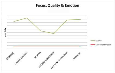 將QA流程成功“移植”到VOC中去的關(guān)鍵在于,以最快的速度度量客戶在呼叫各階段的“情感水平”。記分系統(tǒng)必須夠簡單,如從1——5,1代表非常生氣/不高興,5代表非常高興/愉快。由QA分析師來評判客戶在呼叫中每個階段的情感。由于度量標準是主觀的,因此實際分數(shù)并不很重要。更進一步,客戶也可以被邀進來參加呼叫質(zhì)量調(diào)研。調(diào)研結(jié)果再結(jié)合呼叫時的客戶情感來分析。
