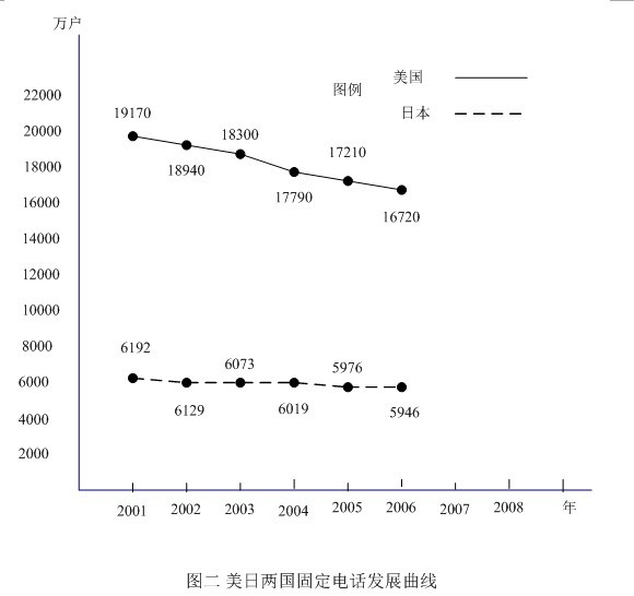 〔3〕大約有2%的美國家庭沒有電話。IBB咨詢公司資深分析師表示,「美國擁有大量愛講電話的人,可以隨處打電話正是美國人熱衷的事情! 大型傳統(tǒng)電話公司如AT&T、威瑞森(Verizon),受到美國人的這一偏好的影響,移動通信業(yè)務(wù)現(xiàn)都已經(jīng)超過了他們原本的核心業(yè)務(wù)(固定電話)。據(jù)桑福.伯恩斯坦公司的調(diào)查顯示,紐約地區(qū)固定電話的數(shù)量,從2000年以來已經(jīng)下降了55%,新澤西的情況也差不多,下降了50%。德州下降了20%,加州下降了21%。在年輕用戶中這個(gè)趨勢更為明顯:34.5%的25到29歲年齡段者,家中只有移動電話,30到44歲年齡段者,這個(gè)比例下降至15.5%,65歲以上者,只有2.2%。雖然移動電話對固定電話的取代作用,日美兩國基本相似,但在日本通信公司卻是IP電話和VoIP電話的主要提供者,因此日本固定電話歷年下降曲線就比較平坦,不像美國那樣厲害,請見圖二。